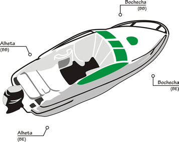- Bochechas: Parte curva da embarcação nas proximidades da proa em ambos os lados, temos a bochecha de bombordo e a bochecha de boreste;